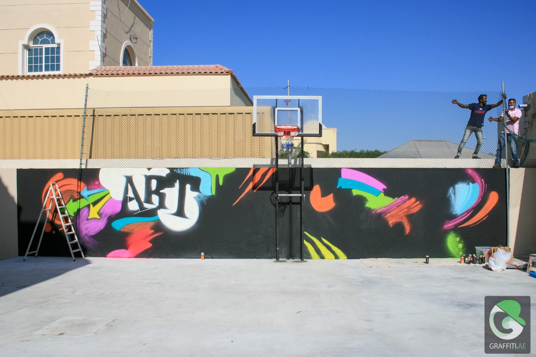 Katarina wanted something to bright up her swimming pool wall. We came up with one sketch, modified it one time and even added on site some butterflies.